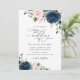 Blaue Navy Blumen, rosa Blume, Blumenzehen Einladung