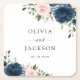 Fügen Sie Ihrer Hochzeitsfeier eine persönliche Touch mit diesen stilvollen und unvergesslichen Party hinzu! Das Design ist mit Marineblau- und Rosa-Blume und Grün auf weißem Hintergrund gestaltet.
