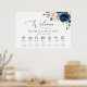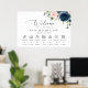 Fügen Sie Ihrer Hochzeitsfeier eine persönliche Touch mit diesen stilvollen und unvergesslichen Party hinzu! Das Design ist mit Marineblau- und Rosa-Blume und Grün auf weißem Hintergrund gestaltet.