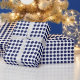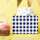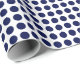 Ein Verpackungspapier, das mit einem navy blauen Punktmuster auf weißem Hintergrund entworfen wurde. Passen Sie den weißen Hintergrund unter anderen Optionen an.