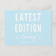 Mit dieser humorvollen Ankündigung einer Schwangerschaft kündigen Sie einen neuen Baby-Jungen an, der eine hellblaue Postkarte mit den Wörtern "Latest Edition Coming" in Weiß enthält. Personalisieren Sie es, indem Sie den Platzhalter-Text ersetzen. Für weitere Optionen, wie zum Beispiel den Schriftart zu ändern und ihn zu vergrößern oder zu verändern, klicken Sie auf den Button "Anpassen". *Bitte beachten Sie, dass das Zazzle-Wasserzeichen, das in der Zoomvorschau angezeigt wird, NICHT auf dem gedruckten Endprodukt erscheint. © Novel Type