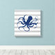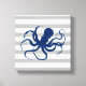Blaue Octopus Grau-weiße Streifen Leinwanddruck