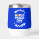 Feiern Sie am 21. September den Internationalen Friedenstag (auch Weltfriedenstag genannt) mit diesem Edelstahl-Edelstahl-Edelstahlwascher, der ein helles orangefarbenes Friedenszeichen zeigt, das für den Buchstaben O in der Welt stehend ist, umgeben von Lorbeerweinen-Blätter auf einem beruhigenden blauen Hintergrund. Umkehrung zeigt identisches Design. Design © W.H. Sim. Weitere Informationen unter zazzle.com/expressionsoccasions