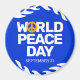 Feiern Sie am 21. September den Internationalen Friedenstag (auch Weltfriedenstag genannt) mit diesem Magneten, der ein helles orangefarbenes Friedenszeichen zeigt, das für den Buchstaben O in der Welt stehend ist, umgeben von Lorbeerkern auf einem beruhigenden blauen Hintergrund. Design © W.H. Sim. Weitere Informationen unter zazzle.com/expressionsoccasions