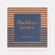 Maßgeschneiderte marineblau und orange gestreifte Geburtstagsparty-Servietten, personalisiert mit dem Namen des Ehrengast und ihrem Party-Datum.