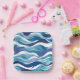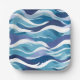 Blaue Ozeanwellen | Moderne, einfache Wasserfarbe Pappteller