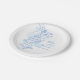 Niedliches Vogelpaar in Line-Art Grafik gezeichnet von einem offenen Vogelkäfig, der an einem blühenden Frühlingsbaum mit Herz hängt. Modernes, schicke Hochzeitsdesign im Vogelkäfig - romantisches Hochzeitsfest-Set. Hübsche Pastelltöne blau und blassblau. Bearbeiten Sie diese Hochzeitspapier-Teller mit Ihrem eigenen Brautennamen und Ihren eigenen Hochzeitsdaten. Einfache, aber elegante Teller eine große personalisierte Ergänzung zu Ihren Hochzeitstischen. Ideal für Hochzeitsfeiern mit blauer Thematik oder für Hochzeiten, Verlobungen oder Jubiläen. Einzigartig zeichnend und designvoll von Sarah Trett.