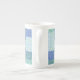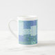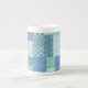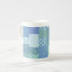 Eine schicke Boho-Knochen-China-Tasse, mit einem Imitat im Landstil Patchwork aus verschiedenen hübschen Periwinkle-Blumen und die Koordination von Karo Gingham-Mustern in Blau, Grün und Weiß. Als Teil der Posh und Painterly 'Periwinkle Patch' Kollektion kann dieses Muster leicht an jede Tasse angepasst werden.