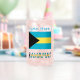 Personalisiertes Glas mit der bahamianischen Flagge und dem Wort BAHAMAS darunter. Fügen Sie oben Ihren Namen in blauen Buchstaben für eine personalisierte Touch oder ein cooles Geschenk hinzu. Spaß in Wiedersehen, Reisegruppen und Clubs. Ideal für Mama oder Vater als Muttertag- oder Vatertagsgeschenk. Wunderschönes Geschenk für die Hauswärmung.