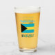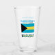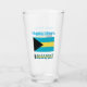 Personalisiertes Trinkglas zeigt die Bahamaflagge und das Wort BAHAMAS darunter. Fügen Sie oben Ihren Namen, in blauen Buchstaben, für eine personalisierte Touch oder ein Geschenk hinzu. Design auf Glas zeigt vorne und hinten. Großes Geschenk für die Hauswärmung. Spaß in Wiedersehen, Reisegruppen und Clubs. Mama und Vater mögen es am Muttertag oder Vatertag schätzen.