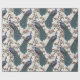 Dieses farbenprächtige blaue Pfau & Magnolia Wildlife Wrapping Paper zeigt ein in Chinoiserie-Stil gezeichnet Muster von hand blauen und aquamarinen Pfauen, die auf den Magnolienbaumzweigen in Blüte auf elegantem Elfenbeinhintergrund stehen.