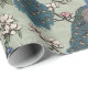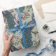 Dieses farbenprächtige blaue Pfau & Magnolia Wildlife Wrapping Paper zeigt ein in Chinoiserie-Stil gezeichnet Muster von hand blauen und aquamarinen Pfauen, die auf den Magnolienbaumzweigen in Blüte auf elegantem, schlängelgrünem Hintergrund stehen.