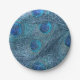 Blaue Pfauenfedern aus dem Glitzer Pappteller