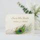 Grün blaue Pfauenfedern auf einem blasscremefarbenen Vintagen Hintergrund.