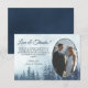 Blaue Pinienbäume Rustikales Hochzeitssemble Foto Dankeskarte