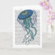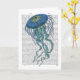 Blue Jellyfish 1 von Fab Funky. Ein schöner blauer, schwebender Quallen mit einer Buchseite für einen Hintergrund.|191847D