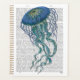 Blue Jellyfish 1 von Fab Funky. Ein schöner blauer, schwebender Quallen mit einer Buchseite für einen Hintergrund.|191847D