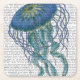 Blue Jellyfish 1 von Fab Funky. Ein schöner blauer, schwebender Quallen mit einer Buchseite für einen Hintergrund.|191847D