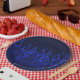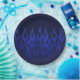 Blaue Racing Flammen auf Carbon Fibre Print Pappteller