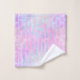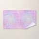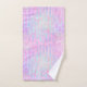Handtuch Set mit abstraktem Hintergrund. Rosa lila und blaue Aquarellfarben bilden dieses künstlerische Design, das vertikale rechteckige Formen auf einem weichen, motlisierten Hintergrund aufweist.