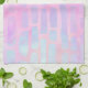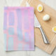 Küchenhandtuch mit abstraktem Hintergrund. Rosa lila und blaue Aquarellfarben bilden dieses künstlerische Design, das vertikale rechteckige Formen auf einem weichen, motlisierten Hintergrund aufweist.