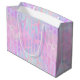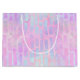 Geschenktasche mit abstraktem Hintergrund. Rosa lila und blaue Aquarellfarben bilden dieses künstlerische Design, das vertikale rechteckige Formen auf einem weichen, motlisierten Hintergrund aufweist.