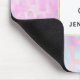 Ein Mauspad mit einem abstrakten Hintergrundmuster. Rosa lila und blaue Aquarellfarben bilden dieses künstlerische Design, das vertikale rechteckige Formen auf einem weichen, motlisierten Hintergrund aufweist. Ein quadratisches Oberteil mit einem goldenen Rahmen in Imitaten, der personalisierte Text im Inneren.