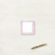 Sticky Notizen mit einem abstrakten Hintergrundmuster. Rosa lila und blaue Aquarellfarben bilden dieses künstlerische Design, das vertikale rechteckige Formen auf einem weichen, motlisierten Hintergrund aufweist. Ein Quadrat überlagert mit einem goldenen Rahmen für Imitate, damit Sie drinnen schreiben können.