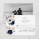 Blaue, rosa und weiße Anemonenkraende, Hochzeitsdesign, blaue Hintergrund RSVP-Karte