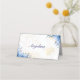 Diese elegante und blumengeschmückte Platzkarte mit blauen Aquarellfarben-Rose und Blätter auf blauem Aquarell eignet sich hervorragend für eine Blumenhochzeit.