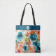 Hier ist eine hübsche Tasche mit einem Herbstblumenmuster in kräftig blauen, weichen Grün- und Orangenrot. Die Sterne im Muster sind wunderschöne blaue Rose, die warmen Blätter ergänzen sie. Das Muster wird auf einem weißen Hintergrund platziert. Die Rückseite des Beutels hat das gleiche Muster ohne Rand, Banner oder Monogramm. Sie entscheiden, welche Seite Sie zeigen wollen!