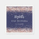 Ein marineblauer Hintergrund. Dekoriert mit Rose Gold Konfetti. Personalisieren Sie den Namen, das Alter und das Datum und fügen Sie ihn hinzu. Weißer Text.