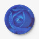 Ein elektrisch blauer Rosenbud, der mit Wassertropfen oder Taubsteinen bedeckt ist. Ein sehr hübsches Design.