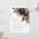 Erleben Sie Ihre Hochzeitsvision mit dieser stilvollen Navy Blue Rust Watercolor Floral Elegant Wedding Invitation - eine perfekte Mischung aus Eleganz und rustikalem Charme. Die blauen und warmen Terrakottötchen schaffen eine romantische, zeitlose Palette, die sich mühelos mit den Themen Boho, Garten oder Vintag inspiriert Themen verbindet. Jedes Detail, von den Aquarellfloralen bis hin zur anmutigen Kalligraphie-Schrift, ist so konzipiert, dass es Ihren einzigartigen Stil widerspiegelt und somit eine nahtlose Passage zu Ihrer Hochzeitsdekoration gewährleistet. Mit individuell anpassbaren Optionen können Sie jeden Aspekt individuell gestalten und Ihre Einladung schön an Ihr Thema anpassen. Schicken Sie uns digital für einen bequemen, Öko-freundlichen Weg, um Ihren besonderen Tag zu teilen und sicherzustellen, dass jedes Detail sich authentisch fühlt. Beginnen Sie jetzt mit der Anpassung Ihrer eleganten Einladung und Set für Ihre unvergessliche Feier!