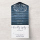 Blaue Rustikale Hochzeit von Blumengarnen All In One Einladung