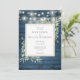 Blaue Rustikale Holzgrün-Lichter Hochzeit Einladung