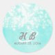 Vintage und rustikale blaue Hochzeitsaufkleber - Siegel mit weißer Saitenleuchte glitzern und die Initialen von Braut und Bräutigam.