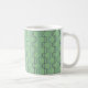 Diese Tasse hat eine Art Deko-Design von blauen und lila Halbkreise mit Linien auf einem Feld von hellgrün verbinden.
