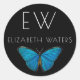 BLAUE SCHALTFLY CLASSIC ROUND STICKER MIT KUNDENBEZEICHNBAREM NAMEN FÜR UMSCHLAG AUFKLEBER