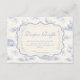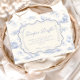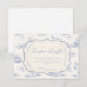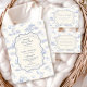 Ein süßes, vintage-inspiriertes Design mit zarten blauen Schleifen, weicher gestreifter Verzierung und charmanten Blaubeergarten-Illustrationen. Toile-artige Kunstwerke mit niedlichen Tieren und Obstkörben schaffen ein klassisches Märchenbuch-Feeling in einer weichen, pulverblicken Farbpalette. Der aufwendige zentrale Rahmen fügt Eleganz hinzu, während er den Gesamteindruck leicht, verfeinert und zeitlos hält. Perfekt für eine Babyparty mit einem sanften Gartenthema und einem Hauch von traditionellem Charme.