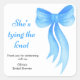 Bow Brautbad-Thema - Blaue Schleife - Sie knüpft den Knoten - Brautbad - Quadratischer Aufkleber.