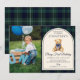 Blaue Schleife Teddy Bär Tartan Foto Geburtstag Einladung