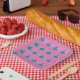 Blaue Schmetterlinge flatterndes Muster Pink Pappteller