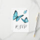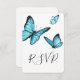 Blaue Schmetterlinge Hochzeit RSVP Card. Elegante Wahl für Hochzeiten im Sommer. Teil einer Hochzeitskollektion. Karte mit Wahlmöglichkeit.
