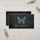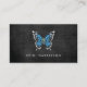 Blaue Schmetterlingslogos auf schwarzem Holz Visitenkarte
