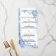Blaue Schneeflocken auf der Speisekarte der weißen Menükarte