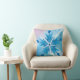 Ein wunderschönes Schneeflocken-Kissen mit einem blauen und einem Lavendel mit kleinen Schneeflocken vorne mit einer großen wasserfarbigen blauen Schneeflocke in der Mitte, der Rücken mit einem gedämpften Lavendel, Rosa und blauem Hintergrund mit vielen hübschen, blauen Schneeflocken in verschiedenen Formen und Größen!