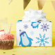 Blaue Schneeflocken und Niedliche Pinguine weiß Na Geschenkpapier