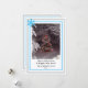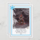 Frohe Weihnachten und ein glückliches neues Jahr in schwarzer Typografie. Familienname und Jahr einfügen. Festlicher schneebedeckter Weihnachtsbaum und Lichter. Bild auf der Vorderseite belassen oder eigenes Bild hochladen. Hellblauer und grauer geometrischer Rand mit blauer Schneeflocke. Gruß und graues Schneeflockenelement auf der Rückseite. Original-Fotodesign von TamiraZDesigns.