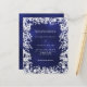 Für eine klassische Winterhochzeit. Ein marineblauer Hintergrund mit Schneeflocken. Die blaue Farbe ist ungleichmäßig. Personalisieren Sie Ihre Namen und Details und fügen Sie diese hinzu. 1 Blatt = 1 Einladung mit Druckkante bis Kante.